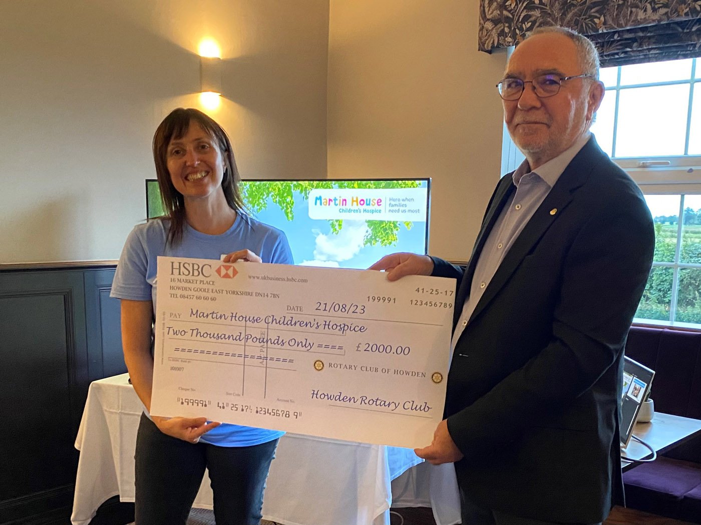 Howden Rotary Club has presented a local children’s hospice with a cheque for £2,000 after hosting a fundraising golf event.