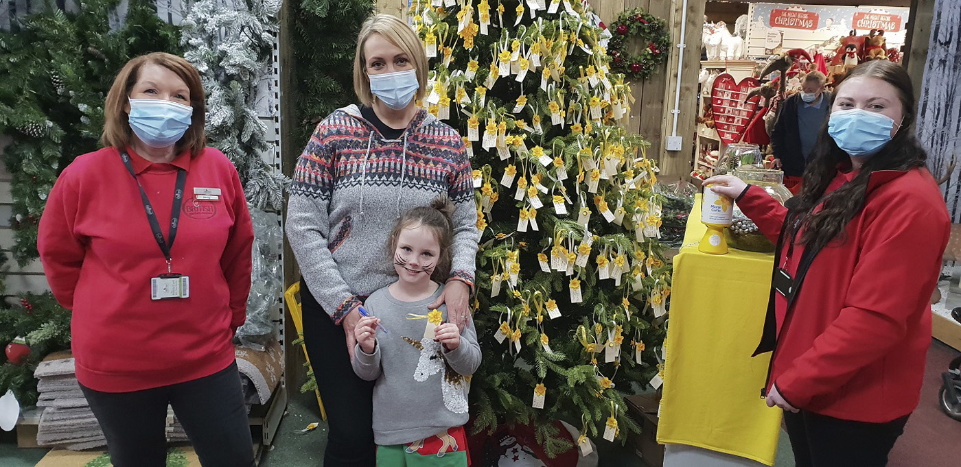 Jan Lynch and daughter Hattie, 5, adding a tag to the Marie Curie Memory Tree at Gilberdyke Garden Centre along side staff, staff Morag Longwell and Ellie Denton. (09-12-79 GT)