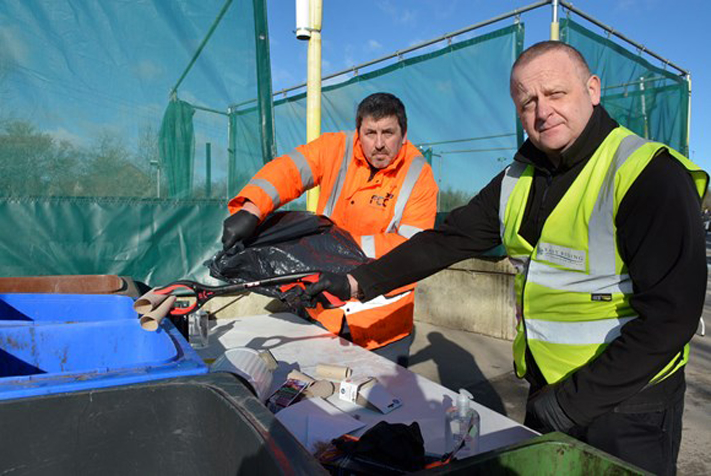 At all five new sites, a sorting table is provided, with gloves, a litter picker, paper towels and anti-bacterial hand wash. Site staff direct residents with bags or boxes of waste to visit the table so they can sort through their own waste. Items that can’t be recycled can then be placed into a site’s general waste skip. During the trial at the Driffield site, the bag sorting area resulted in more than six tonnes of waste being diverted into recycling containers, which would otherwise have gone into the general waste skip.