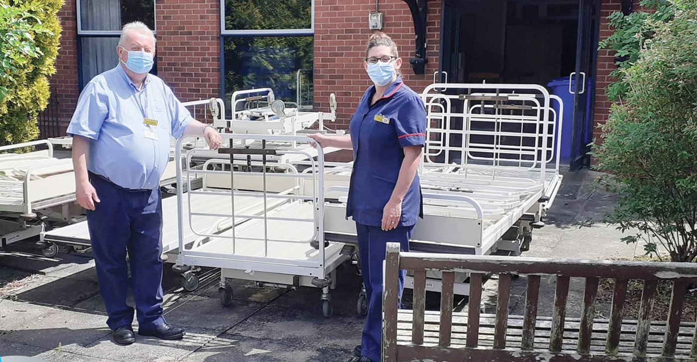 Goole Matron, Kerry Owen, with Grahame Williams, logistics and waste officer, with beds that were donated to a newly-built hospital in Ghana. (29-07-20 SU)