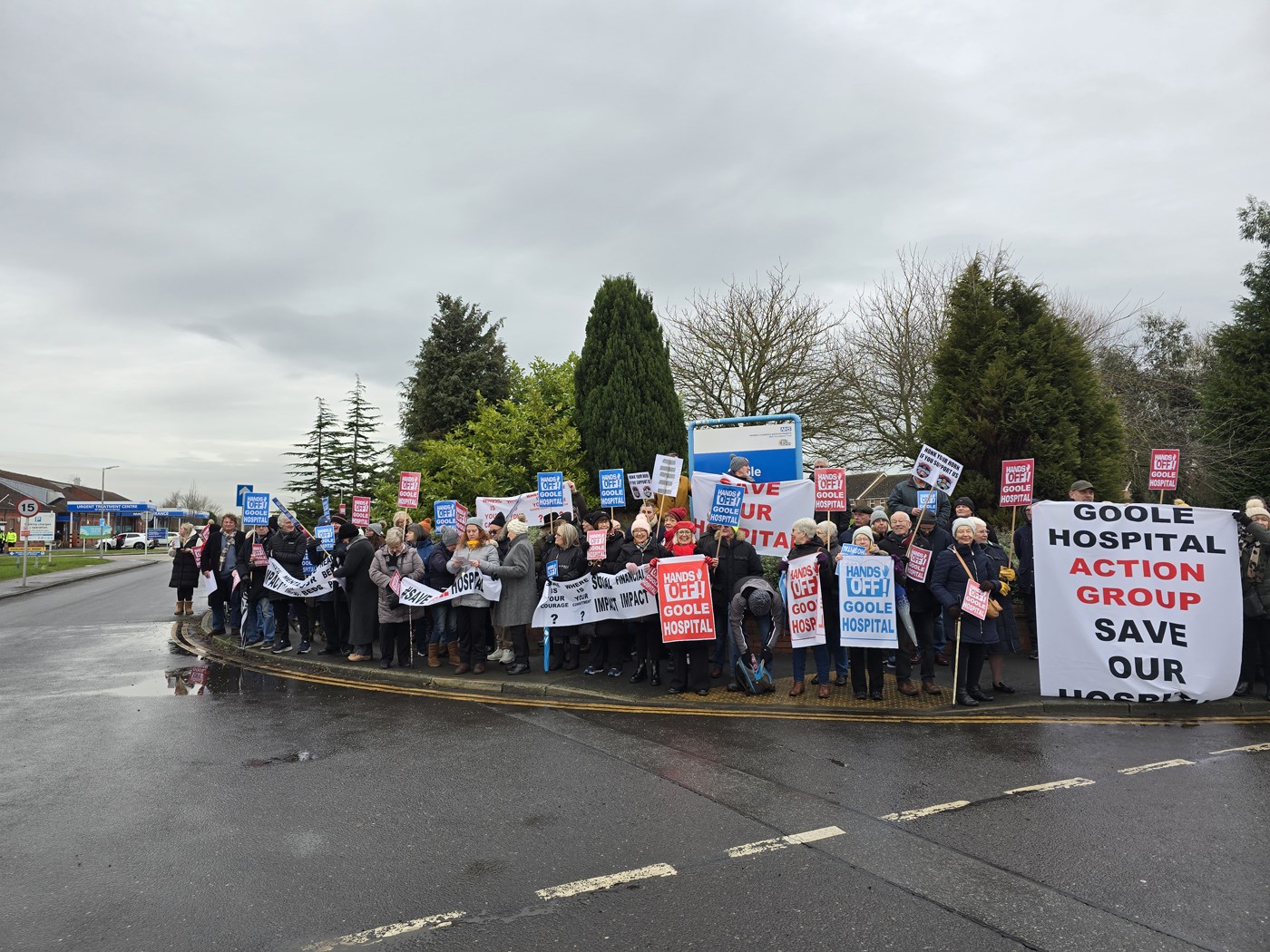 Protesters outside Goole and District Hospital.