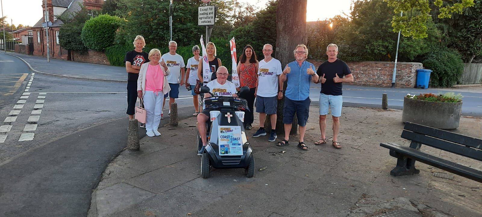 Members of Snaith and Cowick Together Community Group welcomed fundraiser, Turbo Timmo to Snaith. They are pictured at Crosshills in the town located on the Trans Penning Trail, where a new water fountain is due to be installed for use by residents and visitors. (21-07-142 SU)