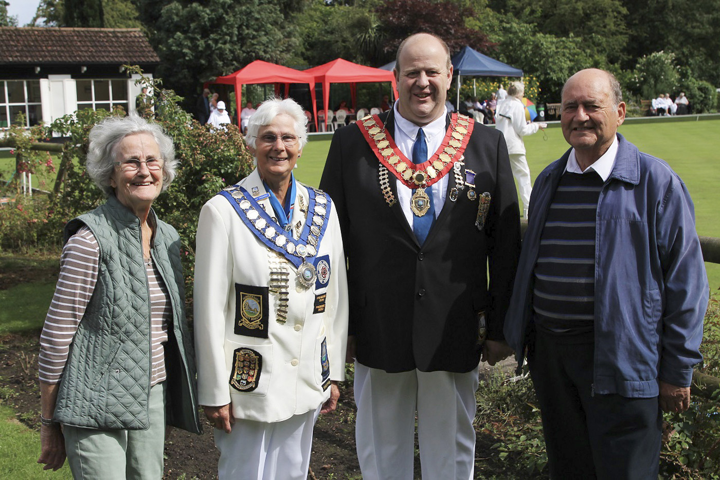 Howden Ladies Captain Mavis Shackley with the County President Eva Dayes and the Men's County President Paul Cranidge with Howden Chairman Ken Duck. (12-08-27 GT)