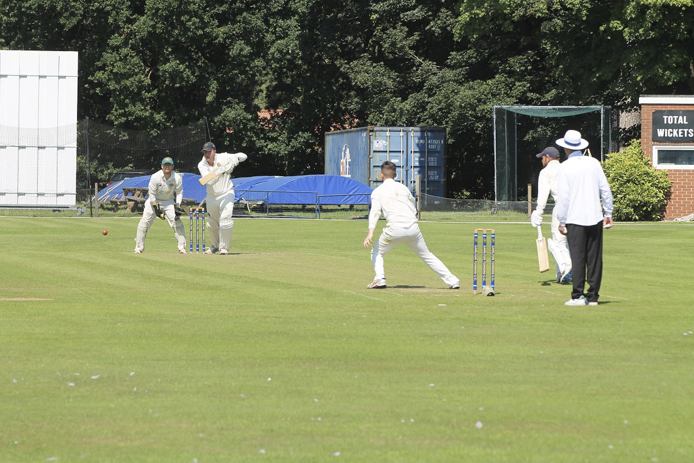 The spectators were then treated to a record opening stand for the club in Saturday league games of 283 between Henry Bayston, who was eventually dismissed for 158, and Tom Collins, whose 142 including 24 fours and two sixes off just 112 balls. The carnage continued as a further 100 runs were added. Mark Holmes with 46 - including six fours and two sixes - being the main contributor as the innings came to an end with the scoreboard showing 383-7.